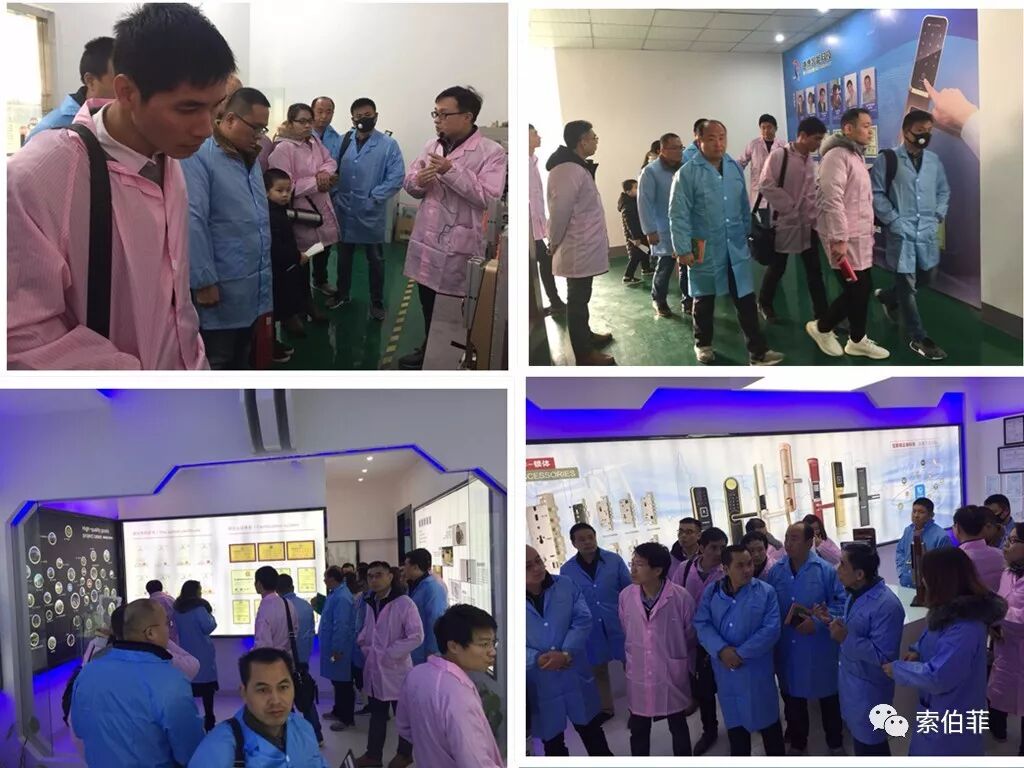 会议伊始,索伯菲营销团队总监朱小伟先生为大家讲解了索伯菲的发展历程、品牌优势、荣誉及品牌文化、运用大数据向客户呈现直观的指纹锁这一朝阳产业巨大的利润空间在熊经理跟杨经理的带领下参观工厂生产线,检测室,喷漆车间,以及展厅成品的展示,让众人更深一步了解加盟索伯菲的优势!
